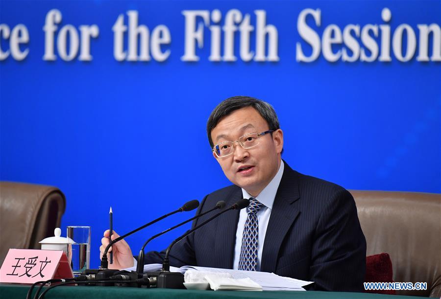 Chinese Vice Minister of Commerce Wang Shouwen answers questions at a press conference on structural adjustments and innovation for the fifth session of the 12th National People's Congress in Beijing, capital of China, March 11, 2017. (Xinhua/Li Xin)