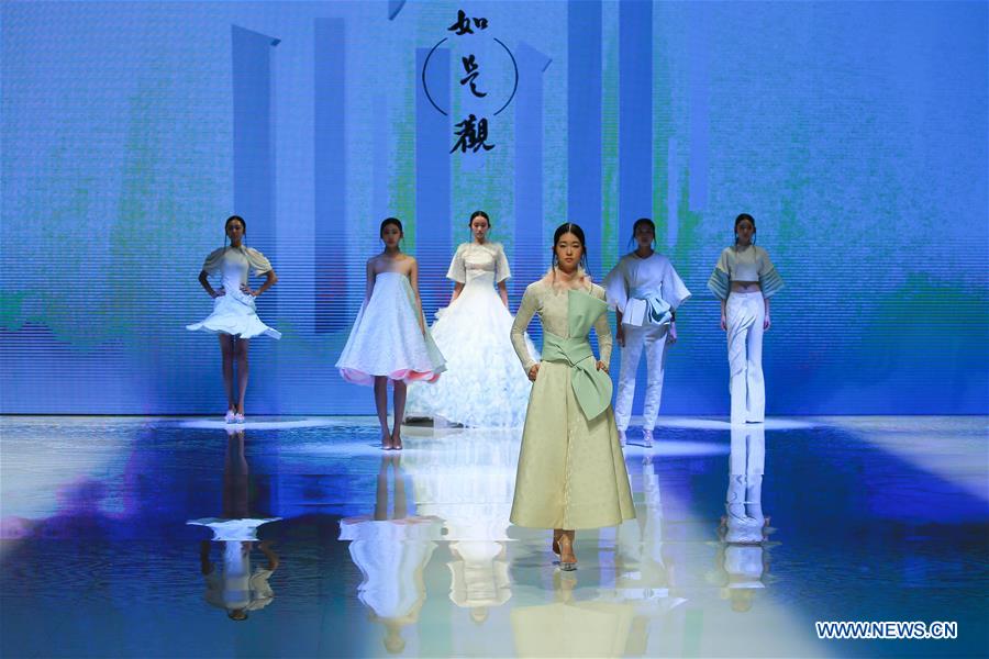 Models present fashion designs during a graduation design show at the Beijing Institute of Fashion Technology (BIFT) in Beijing, capital of China, March 16, 2017. (Xinhua/Li Jianbo)