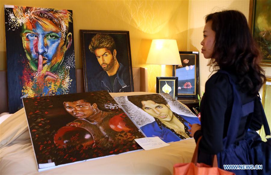 A woman visits the Asia Contemporary Art Show in Hong Kong,south China, March 19, 2017. More than 3,000 pieces of artworks from 18 countries and regions participated in the art show. (Xinhua/Li Peng)