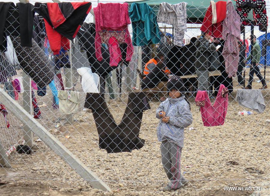 A girl looks out from the Hammam Aleel Camp, Iraq, on March 19, 2017. At about 20km south of Mosul, Hammam Aleel Camp is an important hub for the civilians from Mosul to be relocated. According to a Camp official, more than 35,000 people lived here at the peak, and about 10,000 people are relocated here at present. (Xinhua/Khalil Dawood)