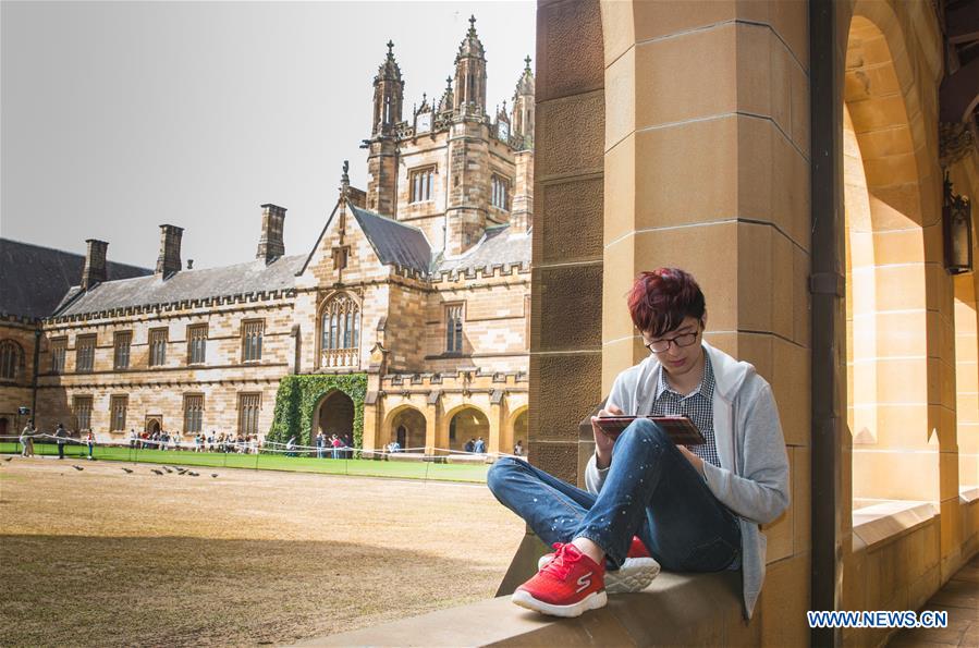 University of Sydney master's student Jony Sun studies on campus in Sydney, Australia, on March 16, 2017. International trade deals, bilateral agreements and strategic business partnerships are often considered the most important aspects of international relations. But the richest foundation for cross-cultural communication between China and Australia lies with the 90,000 Chinese students studying in Australia and living among Aussie families. (Xinhua/Zhu Hongye)