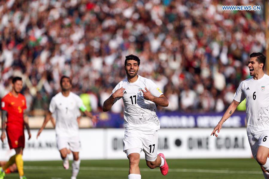 Iran's Mehdi Taremi (2nd R) celebrates after scoring in the 2018 FIFA World Cup Russia qualification match between China and Iran, in Tehran, Iran, March 28, 2017.(Xinhua/Mehr News Agency)