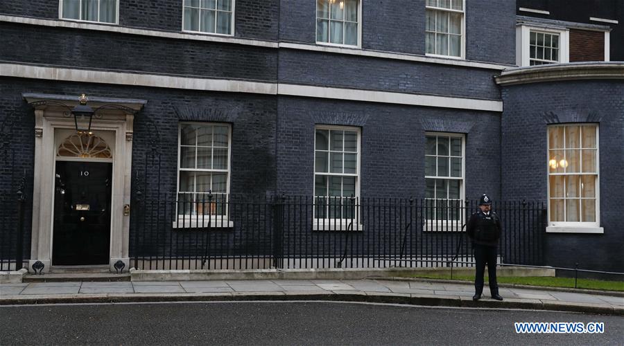 A policeman stands guard at 10 Downing Street in London March 29, 2017. British Prime Minister Theresa May on Tuesday signed the Article 50 letter to officially begin Britain's exit from the European Union, nine months after the country voted to leave the EU in a referendum, local media said. (Xinhua/Han Yan)
