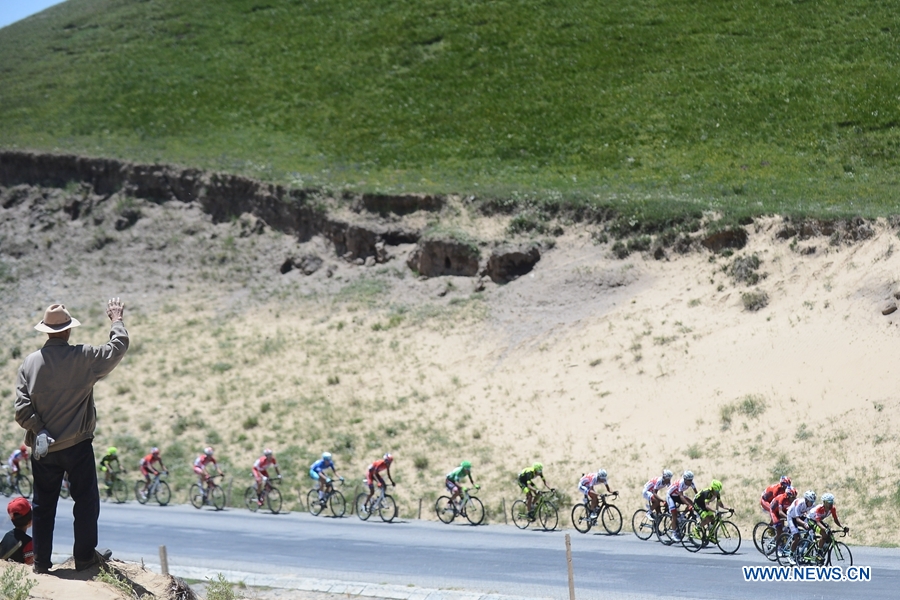 A file photo of Tour of Qinghai Lake cycling race. This year's race will be held from July 22 to August 4. The 13-stage race will start in the Haidong city, Qinghai, and finish in Lanzhou, Gansu. The total distance of the route is 3,671 kilometers including 1,841 of race route and 1,830 of transfer, and features 154 riders from 22 professional teams representing 17 countries and regions, with the majority from overseas. (Xinhua/Wu Gang)