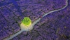 The aerial view of the Baotou-Lanzhou Railway through the desert represents mankind's efforts against the forces of nature: moving sand dunes tamed by vast stretches of man-made straw structures, a technique originating from Ningxia, now known around the world.