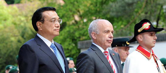Chinese premier attends welcome ceremony held by Swiss president