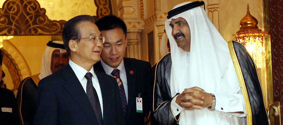 Visiting Chinese Premier Wen Jiabao met in Doha Wednesday with Qatari Emir Sheikh Hamad bin Khalifa al-Thani over bilateral ties.