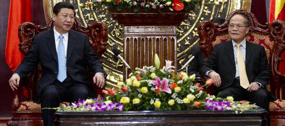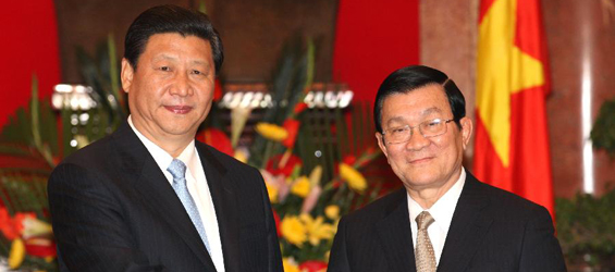 Visiting Chinese Vice President Xi held talks with Vietnamese President Truong Tan Sang in Hanoi on Wednesday on strengthening relations between China and Vietnam.