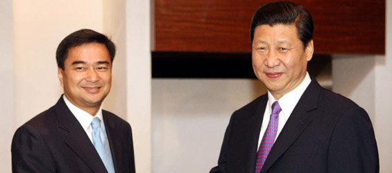 Xi Jinping met Saturday with Thailand's former Prime Minister Abhisit Vejjajiv, discussing ways to strengthen relationship between their two countries.