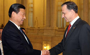 Visiting Chinese Vice President Xi Jinping met with Romanian Prime Minister Emil Boc here on Tuesday, calling for new prospects for bilateral relations.