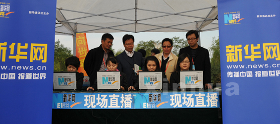 Xinhuanet reporters cover the opening ceremony of the 2nd China-Arab States Economic and Trade Forum in Yinchuan city, Sept. 21, 2011.