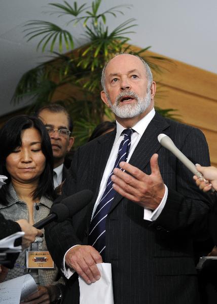 IAEA fact-finding mission team leader hands over report summary to Japan