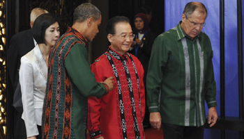 Premier Wen poses for group photos with other leaders before East Asia Summit gala dinner