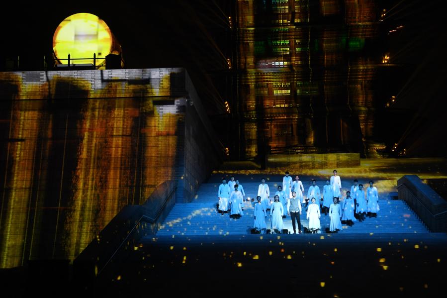 元旦期间,位于甘肃省兰州市七里河区的兰州黄河楼景区上演《大有兰州》光影秀,表演分为“源之大河”“金之大城”“民之大韵”“兰之大州”四个主题篇章,让游客在黄河之滨感悟黄河文化。