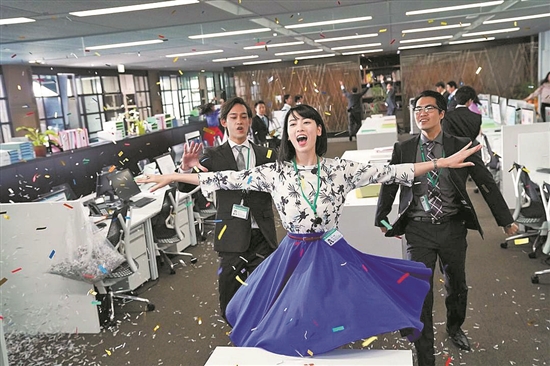 《说好不哭》让许多中国观众记住了这位“盘靓条顺”的日本新生代美女,但这对于带动一部电影的票房来说显然远远不够。更何况,《与我跳舞》并不是三吉彩花更擅长、普通观众也更容易接受的青春爱情片,而是一部略显小众的歌舞片,剧情更是“脑洞大开”:因为一次偶然的被催眠经历,公司白领铃木静香(三吉彩花饰)得了一种“怪病”,无论何时何地,只要听到音乐响起,她就会不由自主地唱歌跳舞。于是,她在公司进行重要提案时,当着所有领导和同事的面翩翩起舞;在跟心仪的男生约会时,直接跳翻了全餐厅的桌椅……