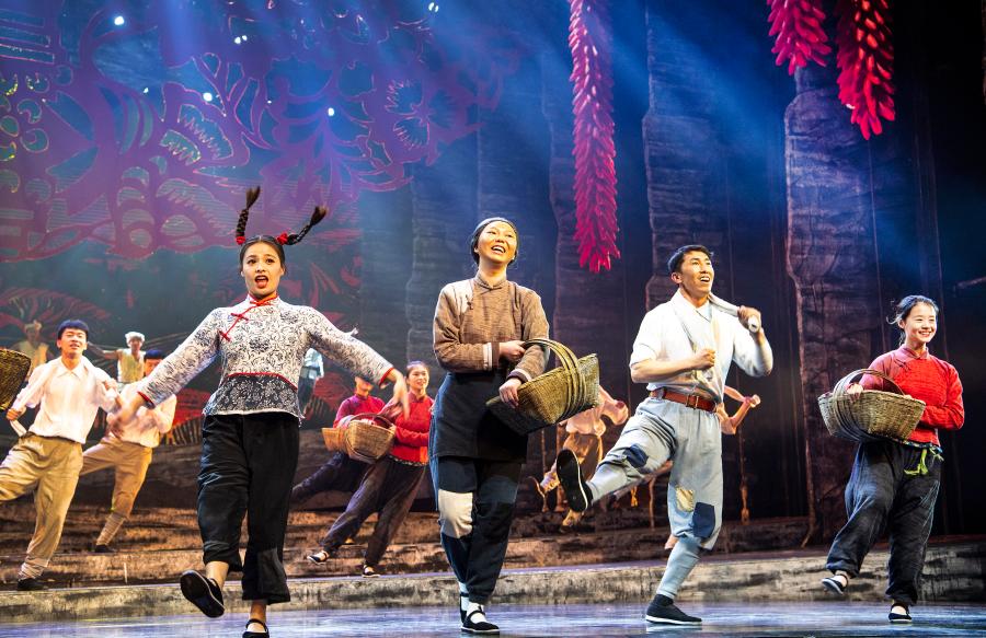 3月6日,演员在红色主题文化秀《延安 延安》中展现当年庆丰收的场景。