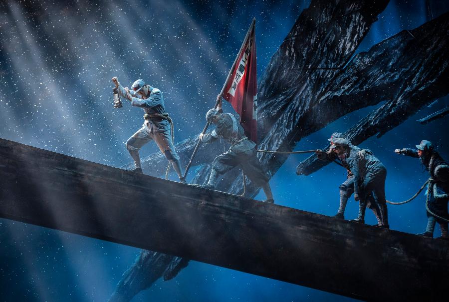 3月6日,演员在红色主题文化秀《延安 延安》中再现当年红军爬雪山时的场景。