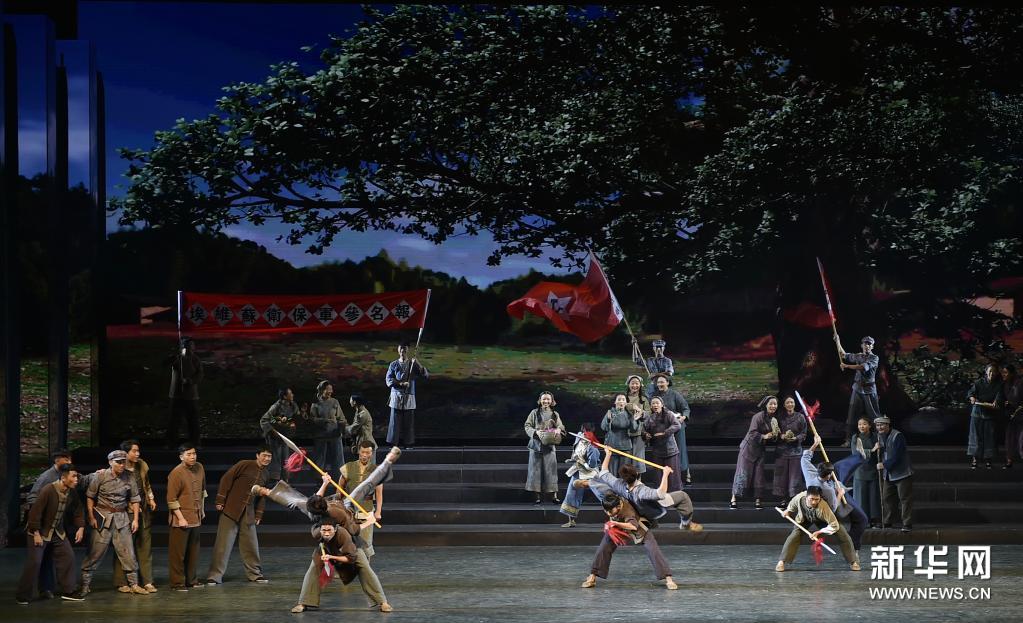 4月25日,演员在《风展红旗如画》中表演。新华社记者 鲁鹏 摄