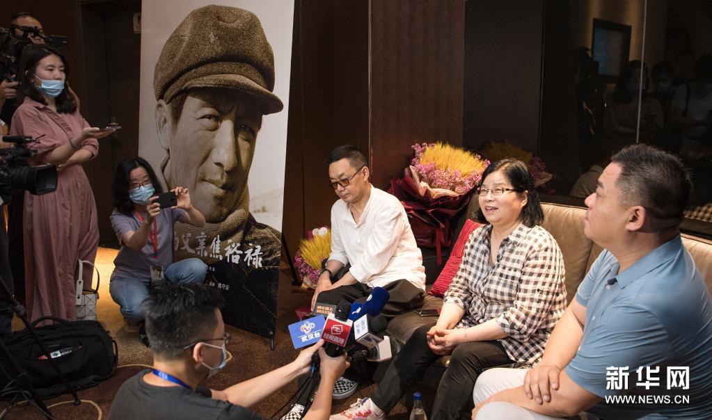 6月23日,焦裕禄的女儿焦守云(右二)在发布会现场接受采访。新华社记者肖艺九摄