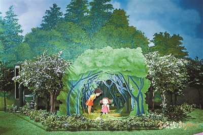 穿过展厅的大门,迎面一幅放大的照片,三位老者坐在花坛前,他们是1985年创立吉卜力工作室的核心班底:宫崎骏、铃木敏夫、高畑勋。迄今为止,他们合力出品了21部动画长片。三人身后是一座浓密的爬山虎覆盖下的小楼,原来是手绘而成的吉卜力工作室最初的外观。将三位元老与自己心爱的工作地点合成在一起,无疑成就了他们的心愿,也是令全世界动画迷不胜感慨的情景。
