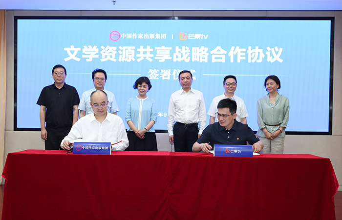 9月26日,中国作家出版集团与芒果TV在京签署了文学资源共享战略合作协议。中国作协主席、中国文联主席铁凝,中国作协党组书记、副主席张宏森出席了签约仪式。