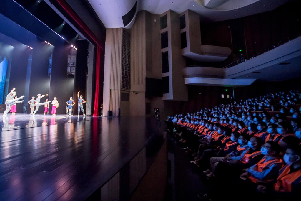 11月3日,中建三局建设者在湖北剧院观看芭蕾舞剧《红色娘子军》。 新华社记者 肖艺九 摄