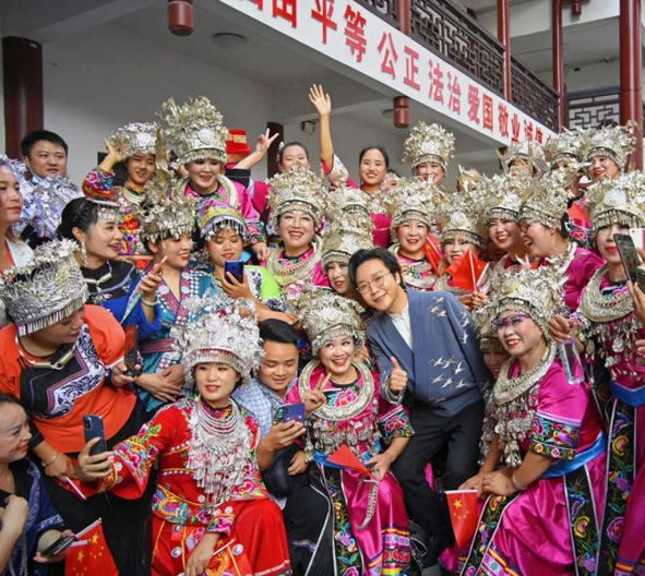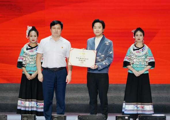 在今年7月18日 “党史教育万里行 红色记忆代代传”红色公益活动暨十八洞再出发·乡村振兴产业发布会系列活动中,李玉刚被授予了“花垣县文化旅游宣传大使”称号,和各乡村干部及代表共同为乡村振兴助力。