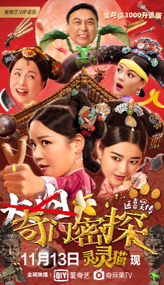 据悉,古装喜剧电影《奇门密探》由上海杠杠影视文化有限公司、美亚长城传媒(北京)有限公司、湖州尤达影业有限公司出品,湖州尤达影业有限公司独家宣发。11月13日,来爱奇艺视频,看“古装碟中谍“晶女郎天团爆笑探案上演。