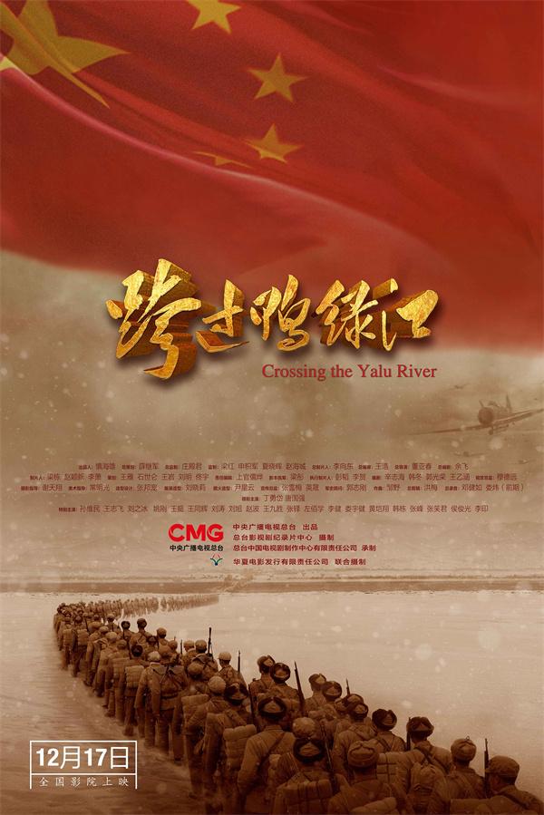 中新网12月10日电 由中央广播电视总台出品、总台影视剧纪录片中心摄制、总台中国电视剧制作中心有限责任公司承制、华夏电影发行有限责任公司联合摄制的故事片电影《跨过鸭绿江》宣布定档,将于12月17日上映。