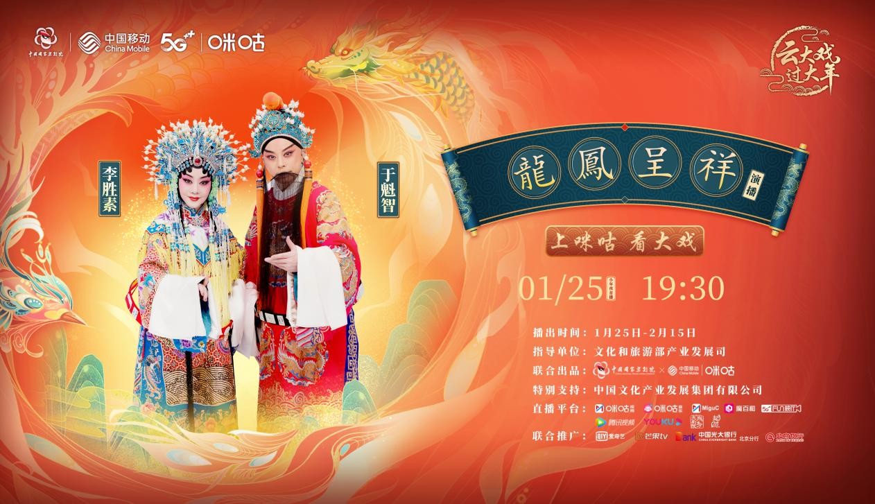 “看大戏,过大年”,虎年新春将至,好戏即将登台。由国家京剧院与中国移动咪咕公司联合推出的经典大戏《龙凤呈祥》,将以“云大戏,过大年”为主题,采用5G+4K+VR的全新模式喜庆开演,从1月25日至2月15日精彩不停,为海内外观众奉上一道年味十足的新春国粹盛宴,共度热闹年。