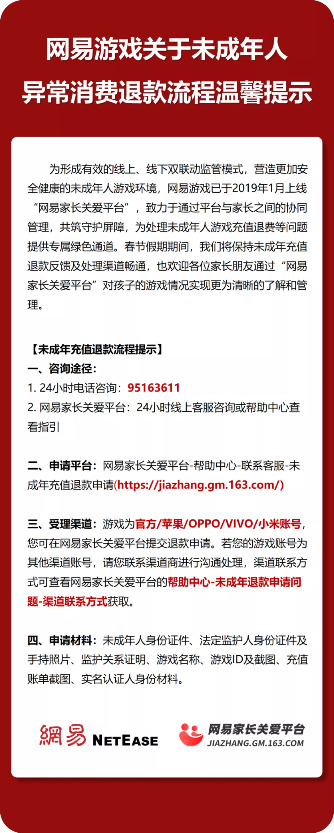 网易游戏针对这个特殊的节点,发布了春节假期未成年人游戏限时的通知,未成年人仅能在春节假期( 1 月 31 日- 2 月 6 日)每晚 20 时至 21 时体验游戏,以坚决的态度,从严落实监管部门要求。