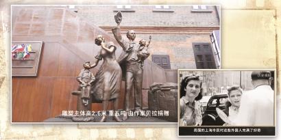 《幸存者之歌》雕塑。当年犹太人在上海街头的历史影像。均纪录片截图 制图:冯晓瑜