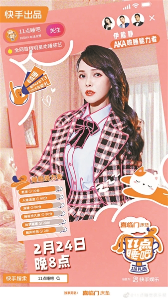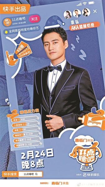 快手自制综艺《11点睡吧》把目光投向这一问题,试图引起大家对睡眠健康的关注,并寻求可行的解决方案。作为全网首档明星劝睡综艺,该节目喊出“high什么high,早点睡”的口号,携明星达人一起探索“熬夜还是早睡”这一命题的终极意义。北京青年报记者探班节目录制,采访行业专家,一同探讨“好好睡觉”。