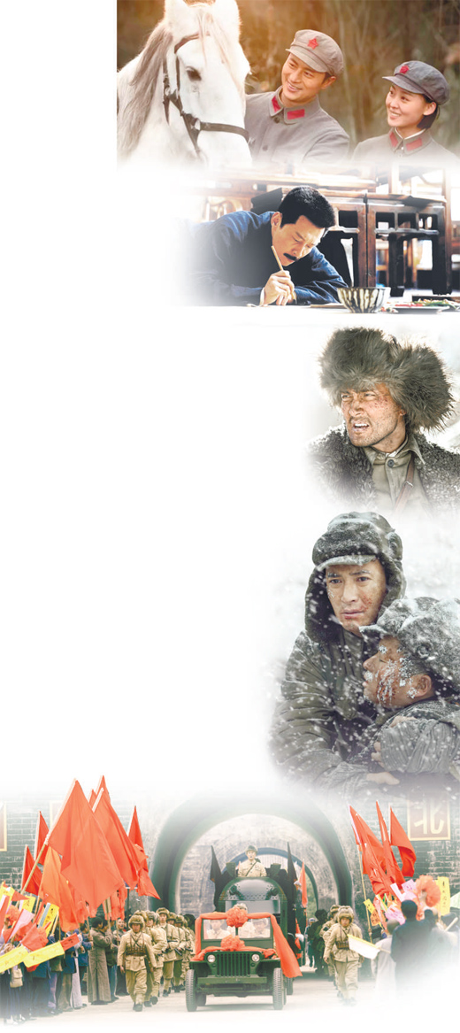 图片自上而下分别为电视剧《可爱的中国》《觉醒年代》《光荣与梦想》《跨过鸭绿江》《百炼成钢》剧照。