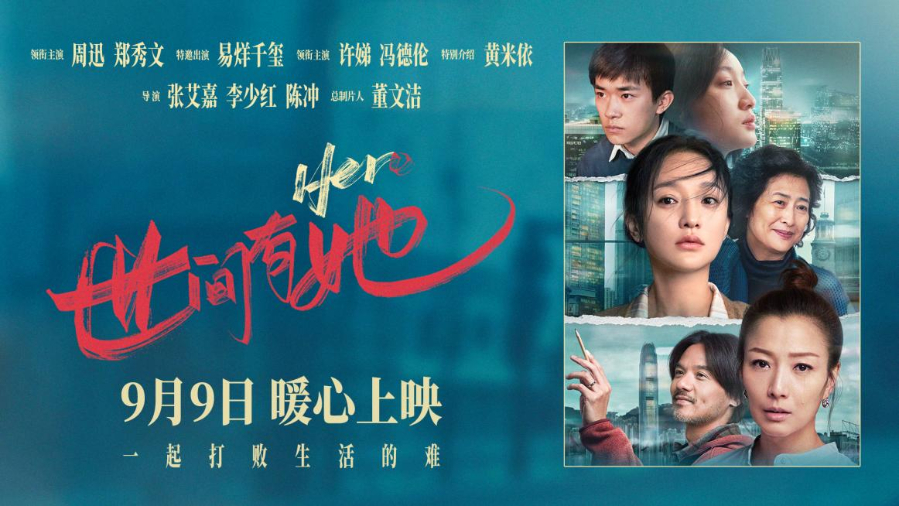 现实题材影片《世间有她》自9月9日起在全国公映。影片讲述了三个家庭的不同境遇,表达了普通人在困境中寻找爱与希望的主题。影片由张艾嘉、李少红、陈冲三位女性导演联合执导,周迅、郑秀文、许娣、冯德伦、黄米依等演员参演,董文洁担任总制片人兼总出品人。