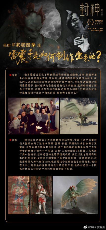 首先感谢乌尔善导演的信任与帮助,让我们从热爱传统文化的雕像艺术工作室,成长为可以一力承担《封神三部曲》数字生物概念设计、以及特效妆造道具制作的末那众合;前后四年多的时间里不仅仅是众多优秀艺术家们的磨合和碰撞,更是一群纯粹封神原著粉的精神狂欢,但同时也带来了一些不得不面对的问题: