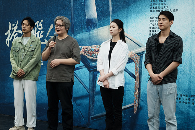 徐浩峰导演介绍青年演员翟冠华(右二)、肖琪峰(左一)、胡晓龙