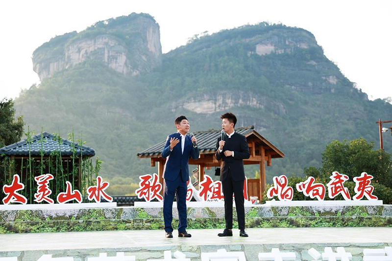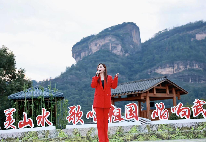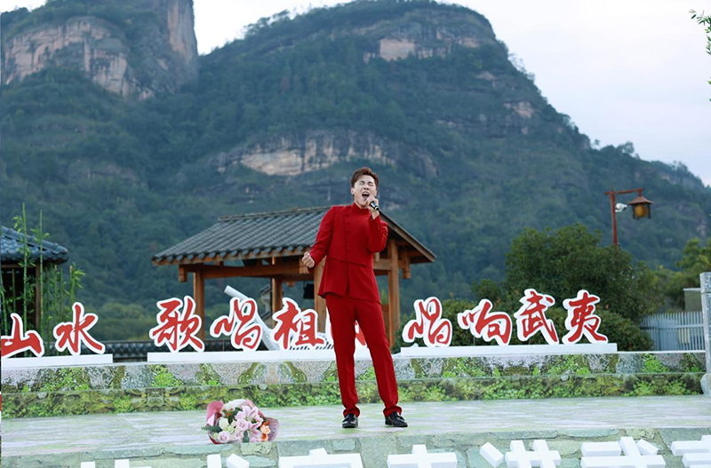 9月27日,“大美山水·歌唱祖国·唱响武夷”百名艺术家走进武夷山启动仪式,在气势磅礴的大王峰下精彩开演。谭晶、张英席、王二妮、金波、孙茜、刘钊、孙超、张少博等演艺界知名艺术家,以及高嘉朗、温奕心、郑鱼、闽南说唱组合等新生代歌手,为现场观众奉献了一场多品类融合且品质高绝的山水视听盛宴。