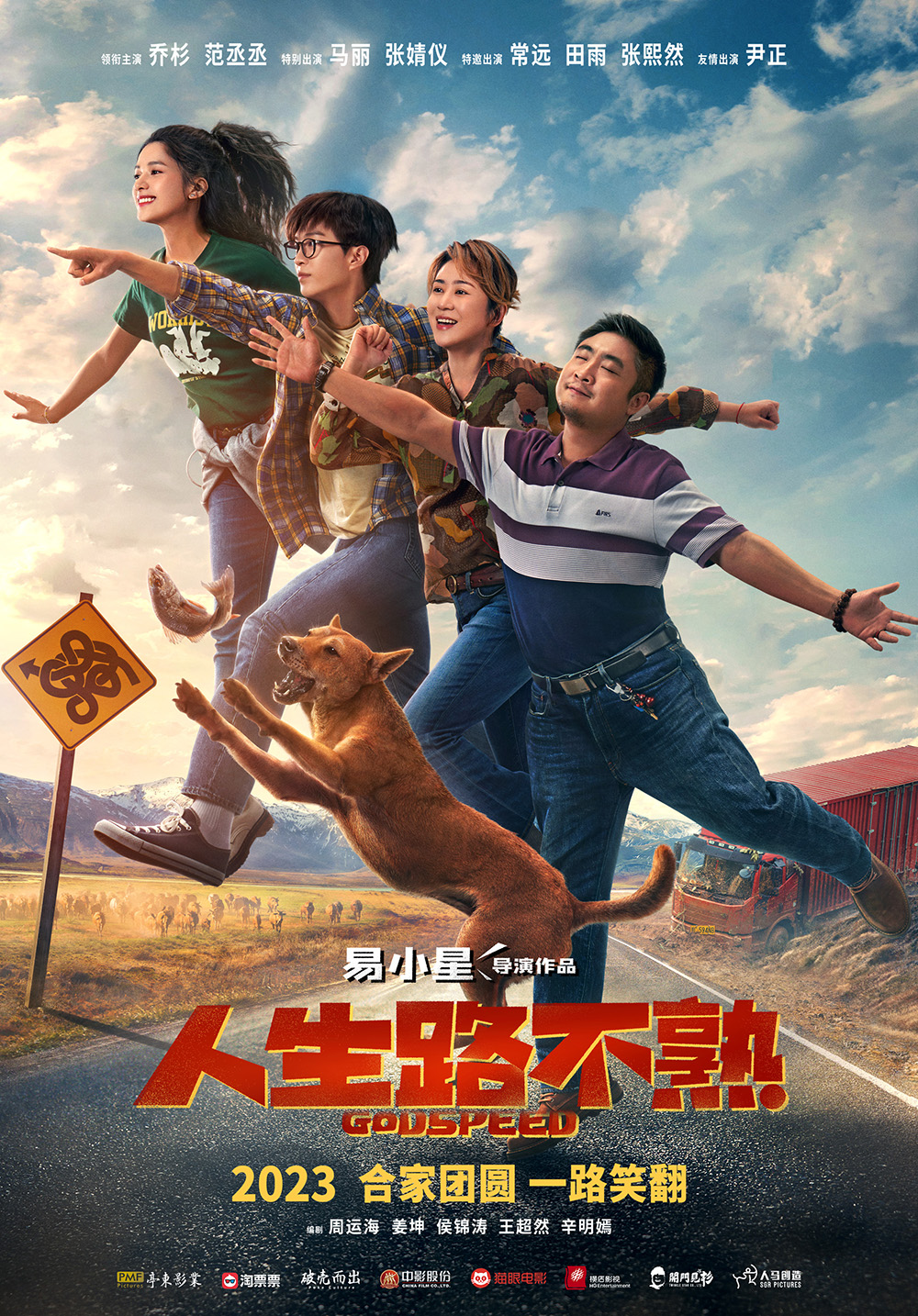电影发布了一张“全家笑飞”版海报,乔杉、范丞丞、马丽、张婧仪一起跳跃在空中,笑盼着远方。背后是大卡车和一望无际的草原,旁边还有一只飞着想要吃掉“咸鱼”的狗,格外吸睛和可爱。让人对一家四口的一路笑翻的卡车之旅,充满期待。电影将于2023年全国上映。