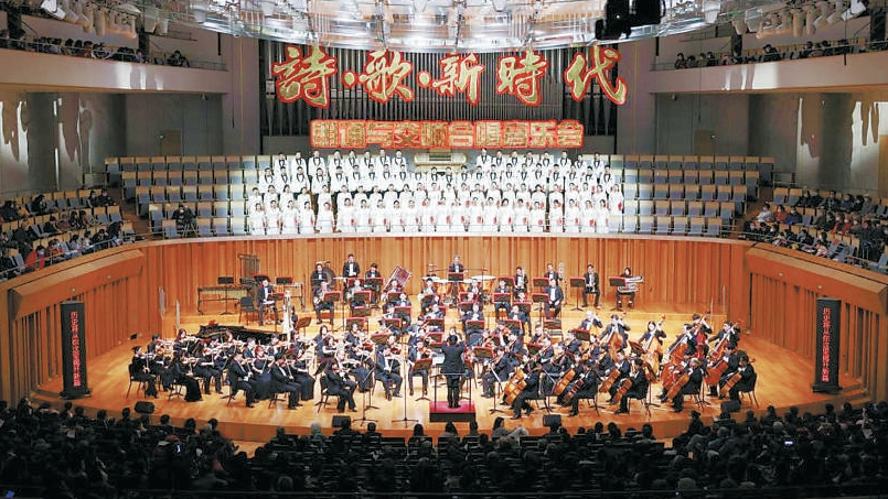“诗·歌·新时代”大型朗诵与交响合唱音乐会演出现场。