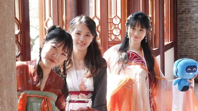身穿汉服的粤港澳青年在活动交流中。张蕾/摄