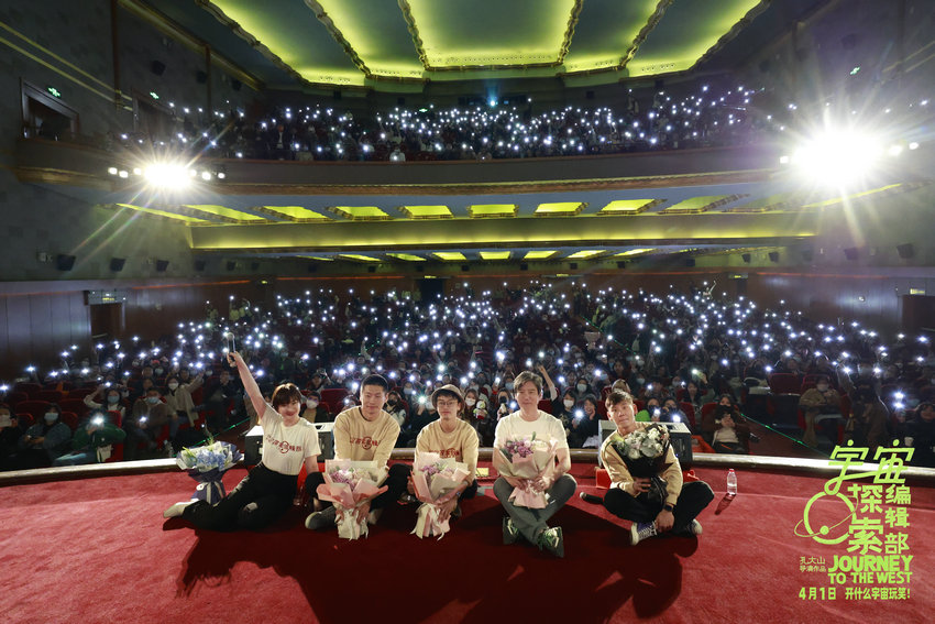 电影《宇宙探索编辑部》“外星人驻地球联络员招募大会”全国路演3月28日来到第十一站上海。导演兼编剧孔大山、领衔主演杨皓宇、编剧兼主演王一通、主演蒋奇明走进电影院和上海戏剧学院与观众进行亲密互动。电影《宇宙探索编辑部》由王红卫、郭帆监制,孔大山执导,杨皓宇、艾丽娅领衔主演,王一通、蒋奇明、盛晨晨主演。目前,影片预售已正式开启,即将于4月1日在全国上映,期待在影院相遇。