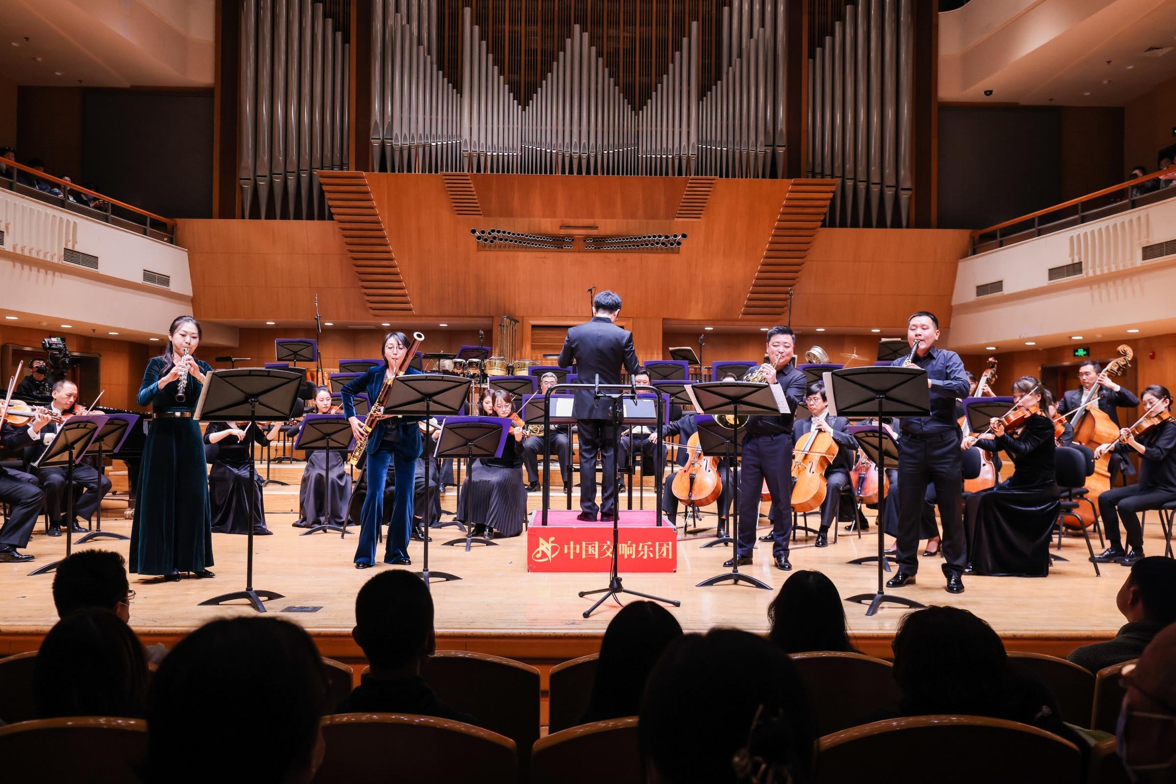 莫扎特《降E大调交响协奏曲》华丽浪漫地收束,中国交响乐团双簧管演奏家林水晶与乐团单簧管副首席吴丹、大管演奏家王瑾、圆号副首席刘一君默契相视,站在舞台最前沿向观众致意。掌声响起来,去年才加入乐团的林水晶“兴奋、自豪又感恩”,因为在这场音乐会上,她不只是一名“隐身”于乐队集体的乐手,而是能够走出座席,与三位同事组成木管四重奏,充分地一展才华——为更多优秀的音乐家搭起展示的平台,正是中国交响乐团“国之骄子”系列演出的初衷。