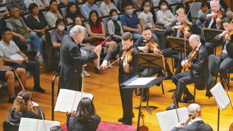 19时20分,国家大剧院音乐厅门前排起有序的长队,熙攘的人潮入场后迅速将全场座席填满——昨晚,继捷杰耶夫执棒的马林斯基交响乐团后,又一支享誉世界的国际名团维也纳交响乐团到访北京。迎着掌声,74岁的著名指挥家亚当·费舍尔与“全能型”小提琴家朱利安·拉赫林快步上场,难忘的“浪漫之夜”音乐会旋即开启。
