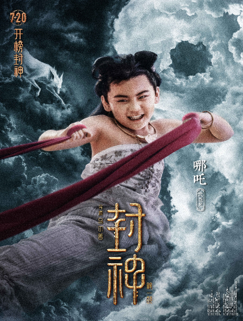 仙界角色的一组海报则突出了《封神第一部》的神话底色。黄渤饰演的姜子牙道骨仙风、此沙饰演的杨戬气宇轩昂、武亚凡饰演的哪吒奋力激战、夏雨饰演的申公豹施展法术、陈坤饰演的元始天尊气定神闲,从众仙人黑白分明的衣着造型,不难发现他们分属不同阵营,双方仙人斗法初现端倪,无疑给封神故事增添了浓厚的神话色彩。