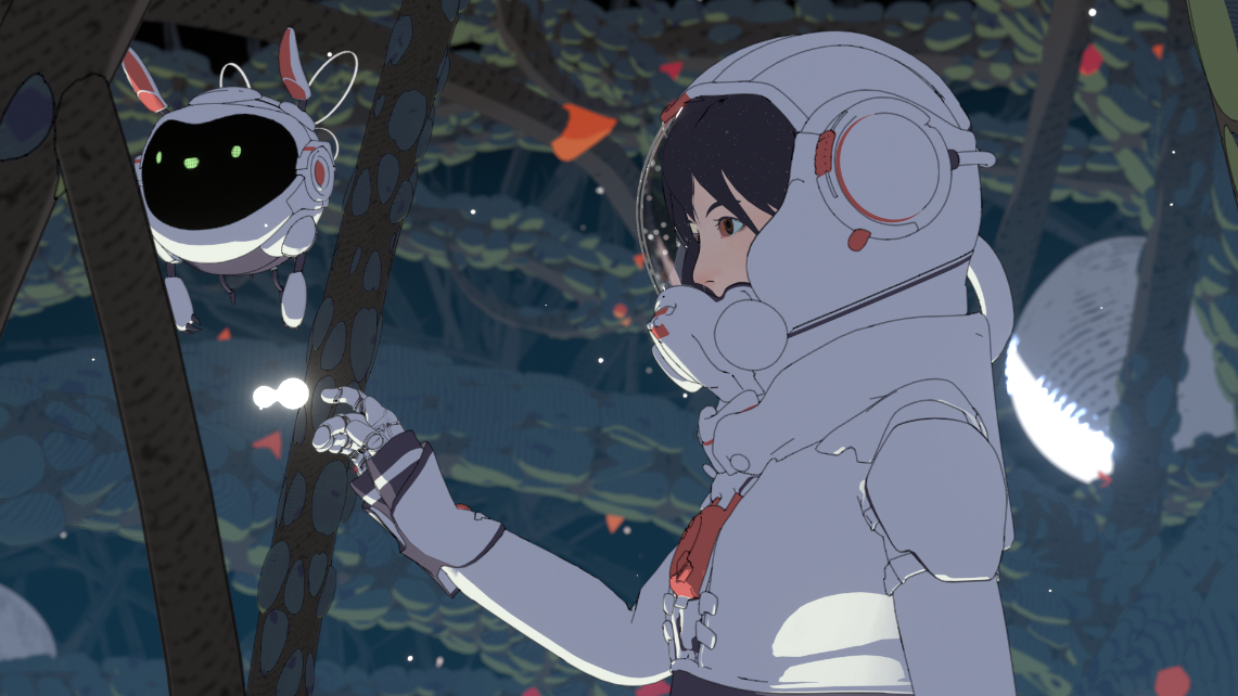 如何在宇宙的浪漫遐想中,探索人与自然神秘又深刻的联系?广美绘画艺术学院的毕业生尹嘉琳的动画作品《循星》提供了一个瑰丽又奇幻的视角。故事在一个星系中的两颗星球之间展开,一名叫“卡西尼”的旅行者和她的机器人“惠更斯”踏上了一段不同寻常的太空漫游之旅,恢宏宇宙中的景象和遗迹,充满未知的冒险元素,在这趟旅程中渐次展开。