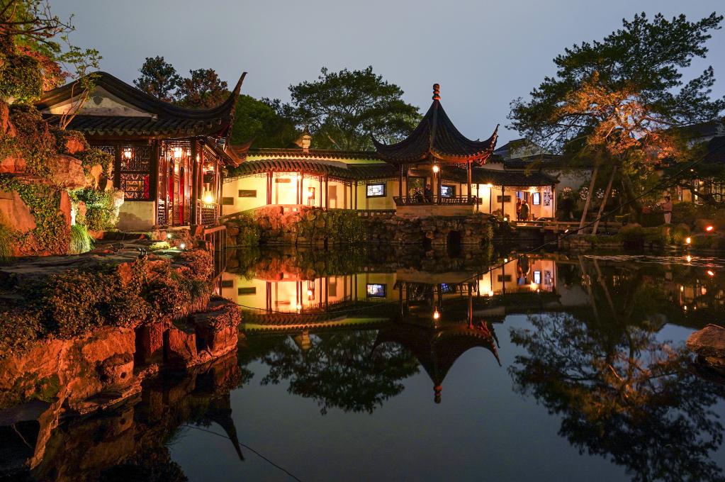 2023年4月5日拍摄的苏州网师园夜景。新华社记者 李博 摄