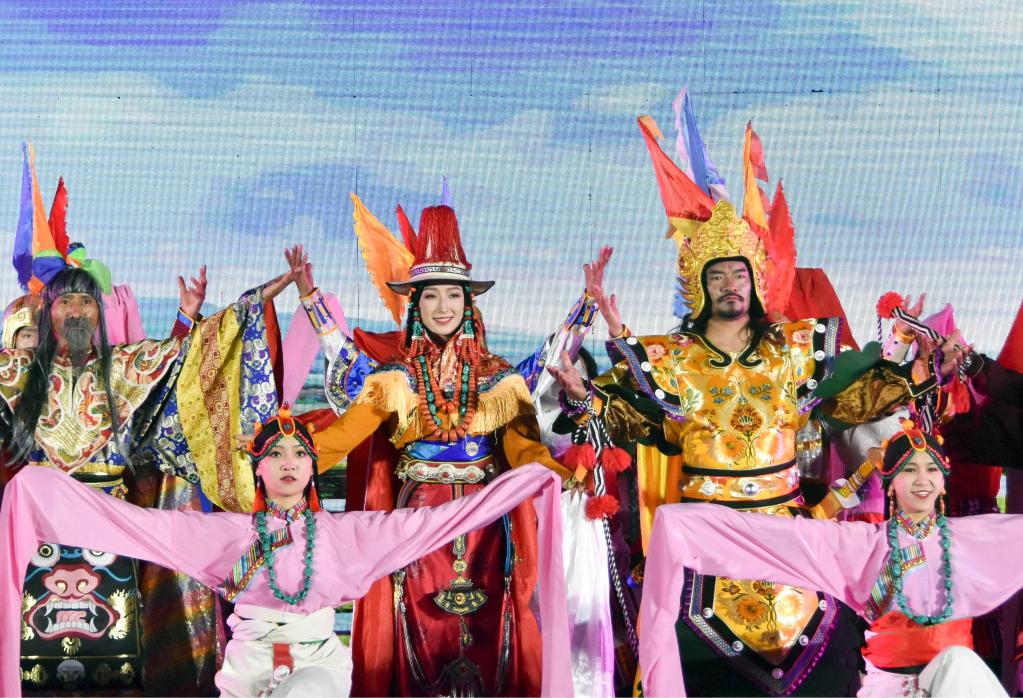 7月13日,歌舞演员在表演《格萨尔》。 新华社记者 张瑜 摄