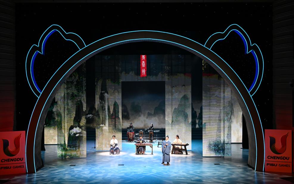 当晚,“大音希声”古琴音乐晚会在成都大运村艺术中心大剧场举行,来自成都古琴文化学会和梓又雅乐团的演奏者为观众带来精彩表演。本场活动是在大运村举办的“Be Together”主题系列晚会之一。