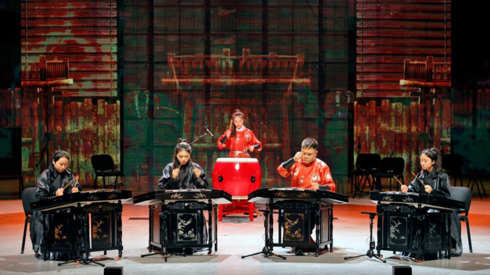 8月3日,来自悦鸣八音室内乐团的乐手演奏《长安社火》。新华社记者 沈伯韩 摄